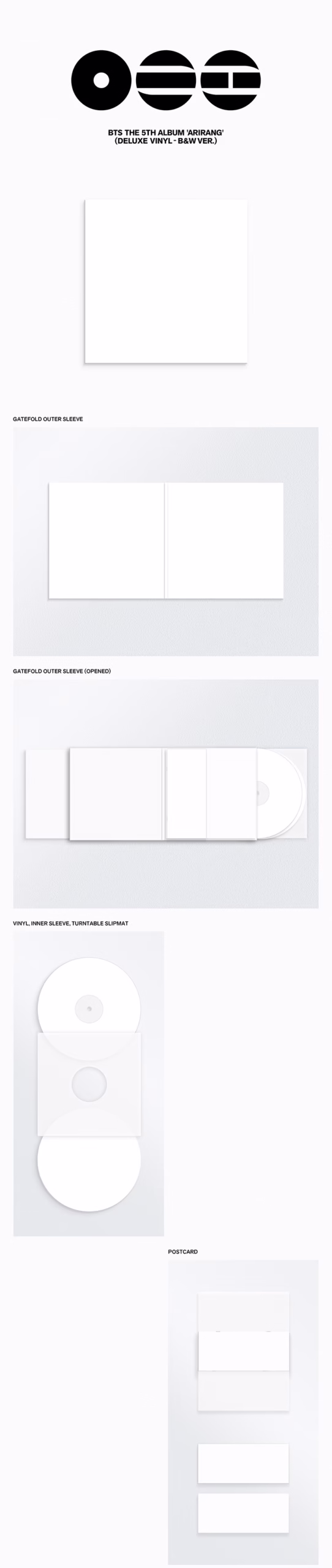 El SET incluye el [‘ARIRANG’ (Deluxe Vinyl) B&W Ver.] y el [‘ARIRANG’ (Deluxe Vinyl) Color Ver.].